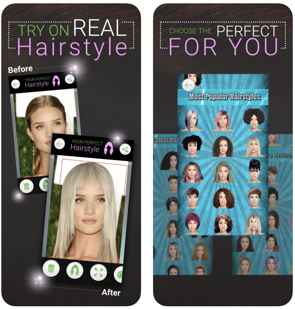 - Mais de 50 estilos de cabelo para experimentar gratuitamente;